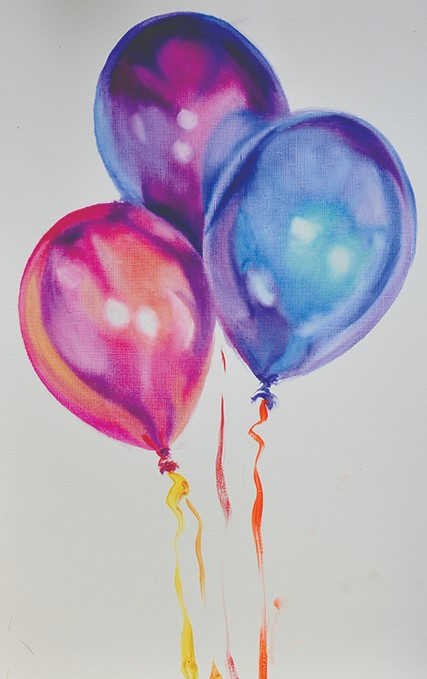 Let’s see who can get the most creative with balloons. These are just crying out for iridescent colors or highlights of some kind. This is a project from Winsor Newton.