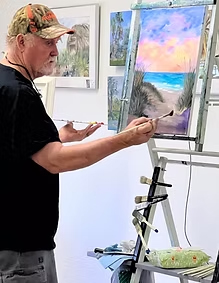 Sean Mullins teaches oil painting in the style of Florida’s Highwaymen, which means we’ll paint a Florida landscape. This class will start earlier and end later than usual because it will only be one day… and it will be a fun day!