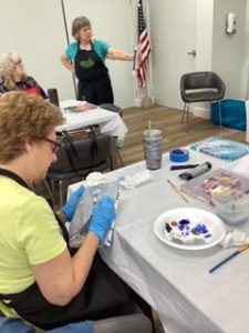 Acrylic Pour class by Bridget Hanley in 4/2024 was very successful and a lot of fun